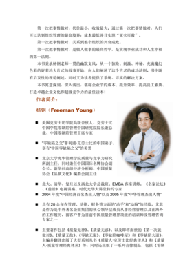 杨钢作为中国零缺陷管理的奠基人,也是“零缺陷之父”菲利浦·克劳士比的中国弟子,他在本本书中传达出来的观点,是让我们在做事情开始时,就按照标准去做,尽量不要有过多的耗损。按照我自己的理解就是,不管是在工作还是生活中,我们做事情的时候,应该将“一次做对”、“符合要求”作为工作标准,而不是把“差不多”、“下次注意点”、“缺点难免” 作为自己的借口。